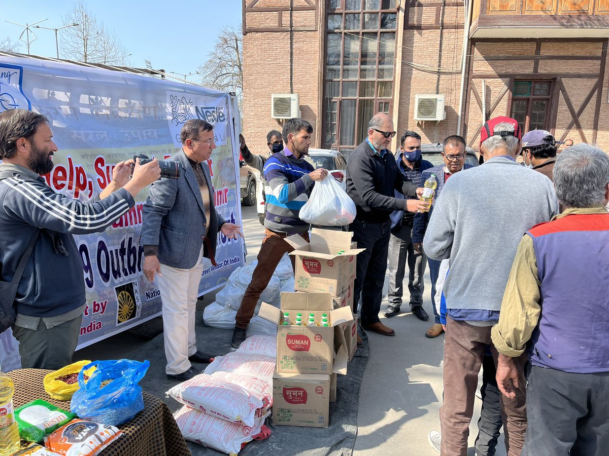 National Association of Street Vendors of India Distributed Ration kits in Srinagar on today on March13th with support of Nestle India in coordination with National Welfare Forum J&K
