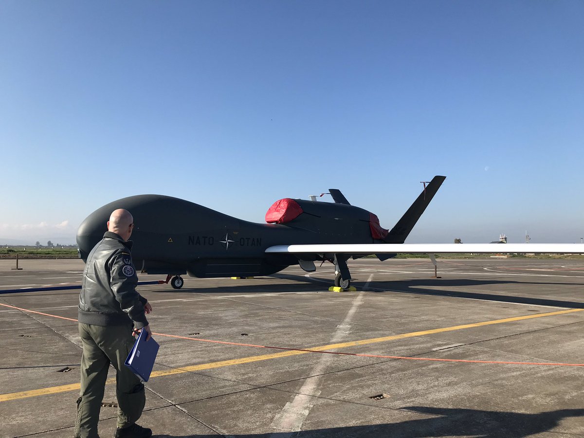 @NATO’s new RQ-4D remotely piloted aircraft. Key for operations, it will help commanders identify threats and see conditions on the ground, in any weather. With a range of 16,113 km, the aircraft can fly for over 30 hrs at a time!