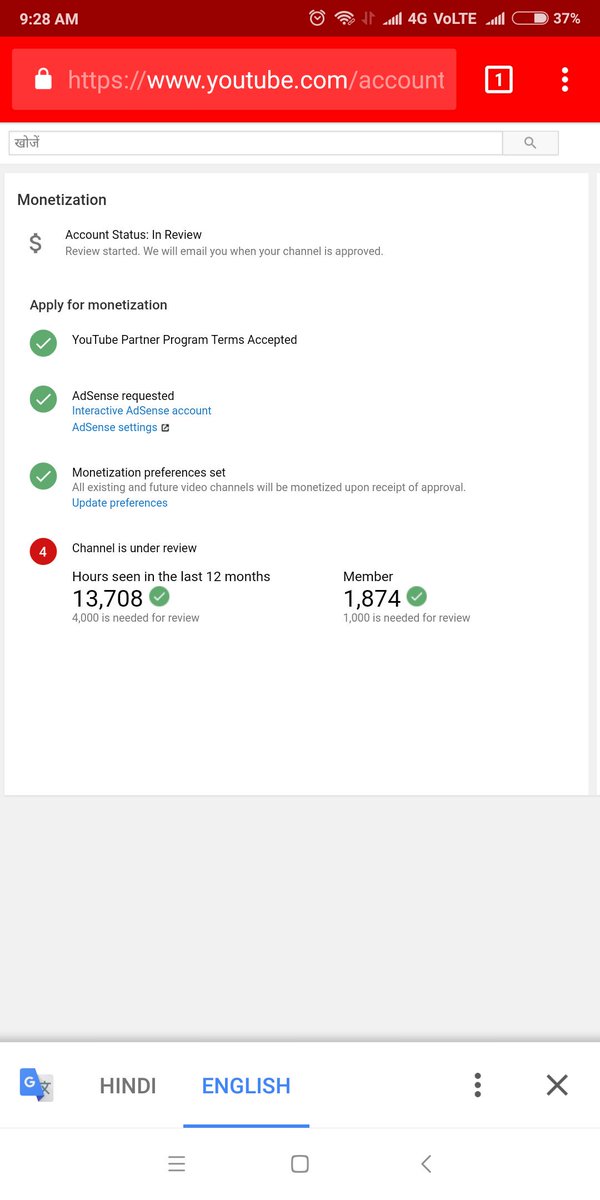 Hello @TeamYouTube my channel is completed the 4k hours watch time & 1k subscriber in previous 365 days and still my channel monetization is not enabled please guide us.