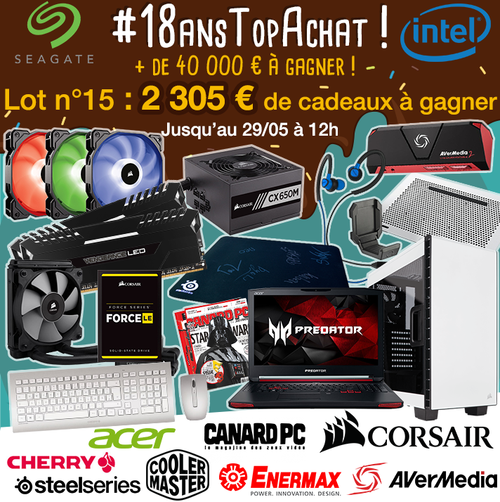 Avant-dernier lot : #Lot17 d'une valeur de 2 110 € ! Pour participer, RT + Follow@TopAchat ;-)pic.twitter.com/OtrEC9hHbF