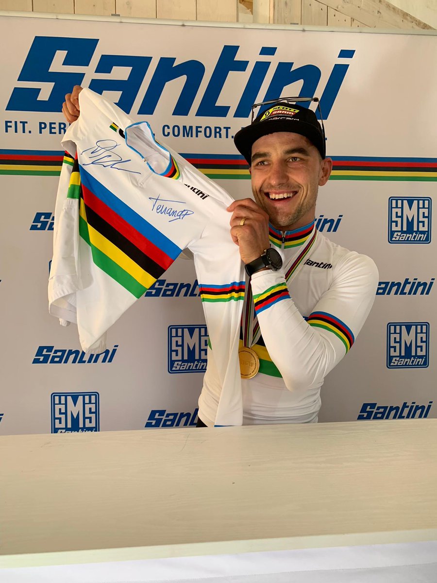 @SANTINI_SMS rainbow jersey signed by 2019 UCI MTB World Champions@nschurter and@FERRANDPREVOT