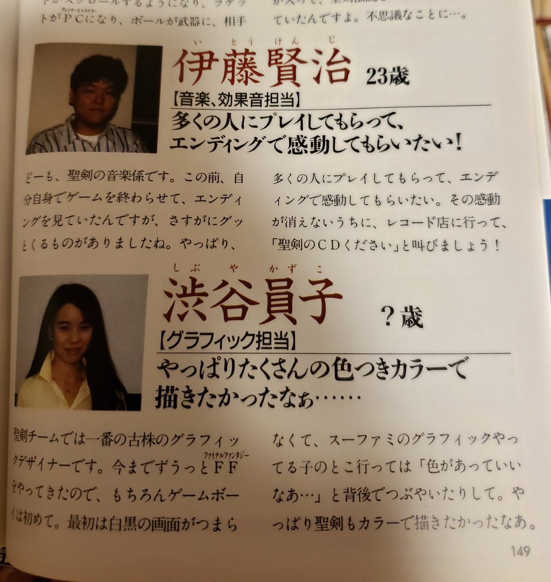 GB版聖剣伝説はこのこの7人で作って絵描きは私1人。7月パリでのジャパンエキスポでこの話をしたので海外の方が反応してくださったのだと思います。タイトルロゴも私がデザインしてラフ画を描いて外のデザイン会社にお願いしたものです。内部でできる事は全部やる時代でした。