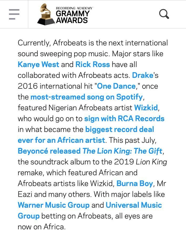 Grammy considers Wizkid's deal with RCA as the biggest deal by an African artiste * Borrowed Love went gold in Canada * Brown Skin Girl gets nominated for an NAACP Image Award. I have no choice but to STAN GREATNESS
