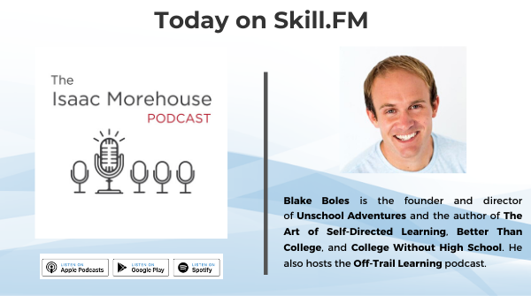 @blakeboles, founder of Unschool Adventures & host of Off-Trail Learning podcast. His upcoming book is called "Why Are You Still Sending Your Kids to School?"