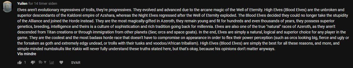 1. Looks like they liked their own comment (Cool I do that too sometimes. Gotta like yourself before you wreck yourself.) 2. They called orcs ugly. Super rude. 3. Elves are notorious liars. So that's a big ol' lie right there.