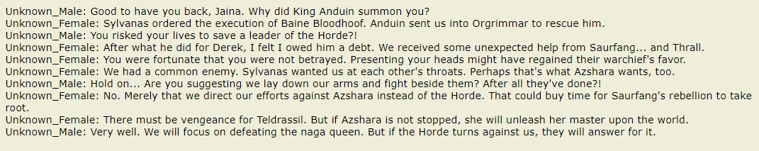 SPOILERS: "I will tell my people what transpired here. Of how Azshara fell because we stood together. Of the threat rising from the depths, and all that is at stake if we should fail. "Then I will take my place beside Saurfang & Thrall, & pray that the sin'dorei stand with me."