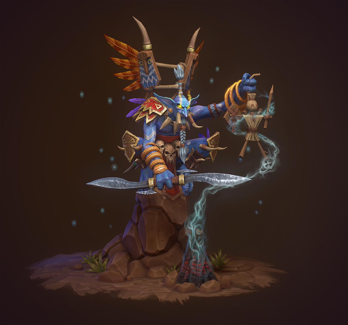 This look is the look I would've given Rokhan. It pays homage to his look from Warcraft 3 and looks super similar to how Vol'jin looked. Plus you gotta love those tiki-totems on his back.pic.twitter.com/5u7tF28BPh
