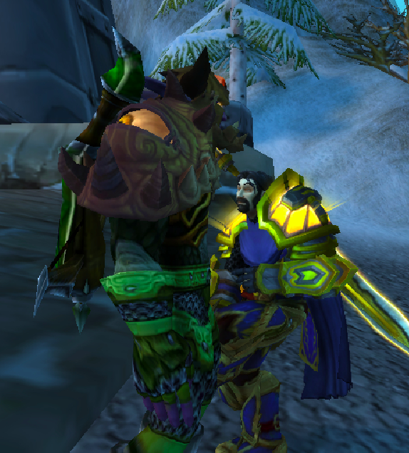 God, right? I thought he was just using old gear for the timewalking, but he’s willingly chosen to mog a clown suit.
