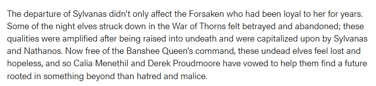 Yeah I don't try to advocate for the Horde and Alliance being dissolved. More all the races -needing- to be shoe horned into them to be playable. Which is at the center of Blizzard telling a story about the trials and tribulations of risen night elves in the worst way imaginable.