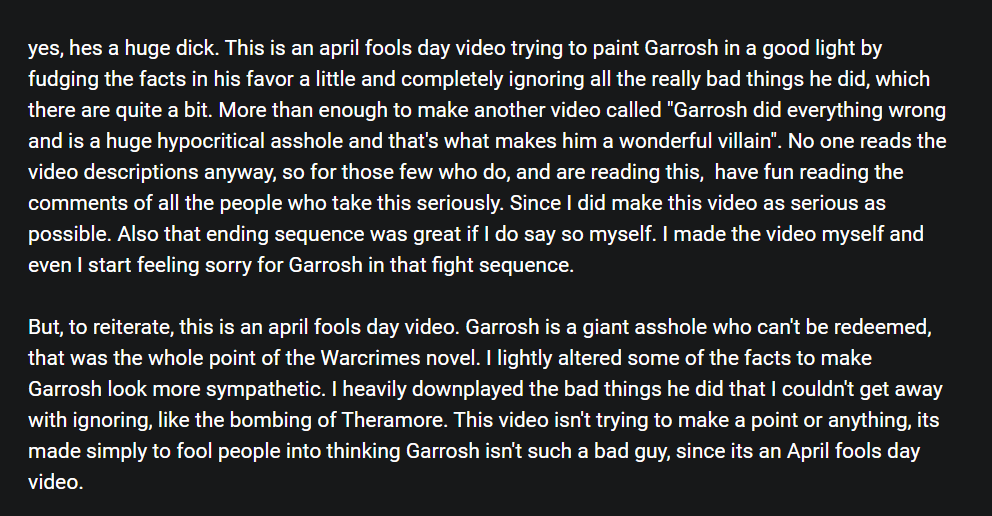 People who're literally using the Garrosh Did Nothing Wrong as a serious source do not read the description and forget about the day the video was posted on sadly. I love Hiru and his content hell the man has literally advertised my channel three times now. He's awesome.pic.twitter.com/MNErVejYUw