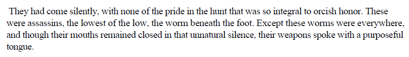 Hah, randomly remembered this, but in regards to Draka, here's what Durotan thought in Lord of the Clans regarding assassins:pic.twitter.com/5GDhjjbvBC