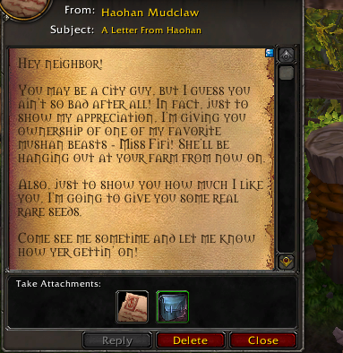 The farm was completely unnecessary, but in retrospect such a good example of why I love MoP so much. Not required for character power, but helpful, and FUN. That's what more systems should be. I can't wait until classic MoP servers.