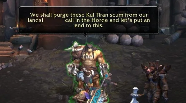 Rexxar still has the funniest, where he pledges to PURGE THESE KULTIRAN SCUM FROM OUR LANDS in Kultiras