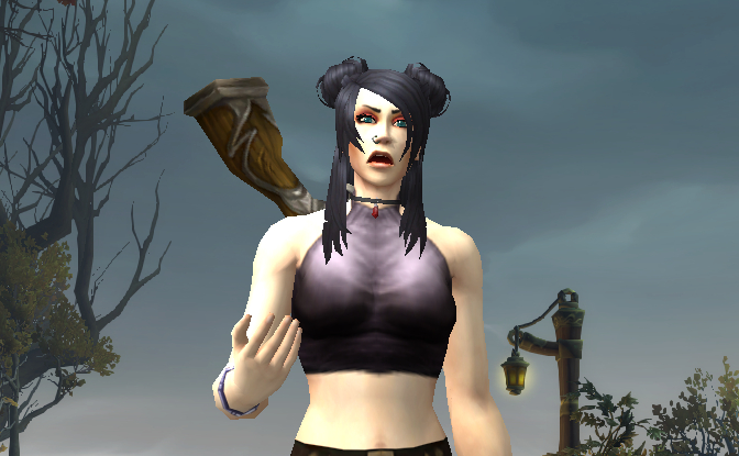 Veronicuhh and her dog, Jason. She's from Westfall, but she'd NEVER admit to it. She takes a lot of selfies, carries around a special large coffee mug, her dog pees on questgivers, and she sells her bikini S.E.L.F.I.E.S - oh, and she quests wearing leggings and a sports bra.pic.twitter.com/8lT9z7dQYo