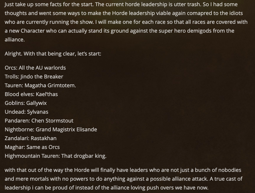 Not saying I don’t like the character, I’m just saying he’s not really that memorable nor does he feel like a cheiftan. It feels the same as when they made Saurfang the Orc leader with a tweet, it doesn’t really feel like there was a journey to it at all, it just kinda happened.