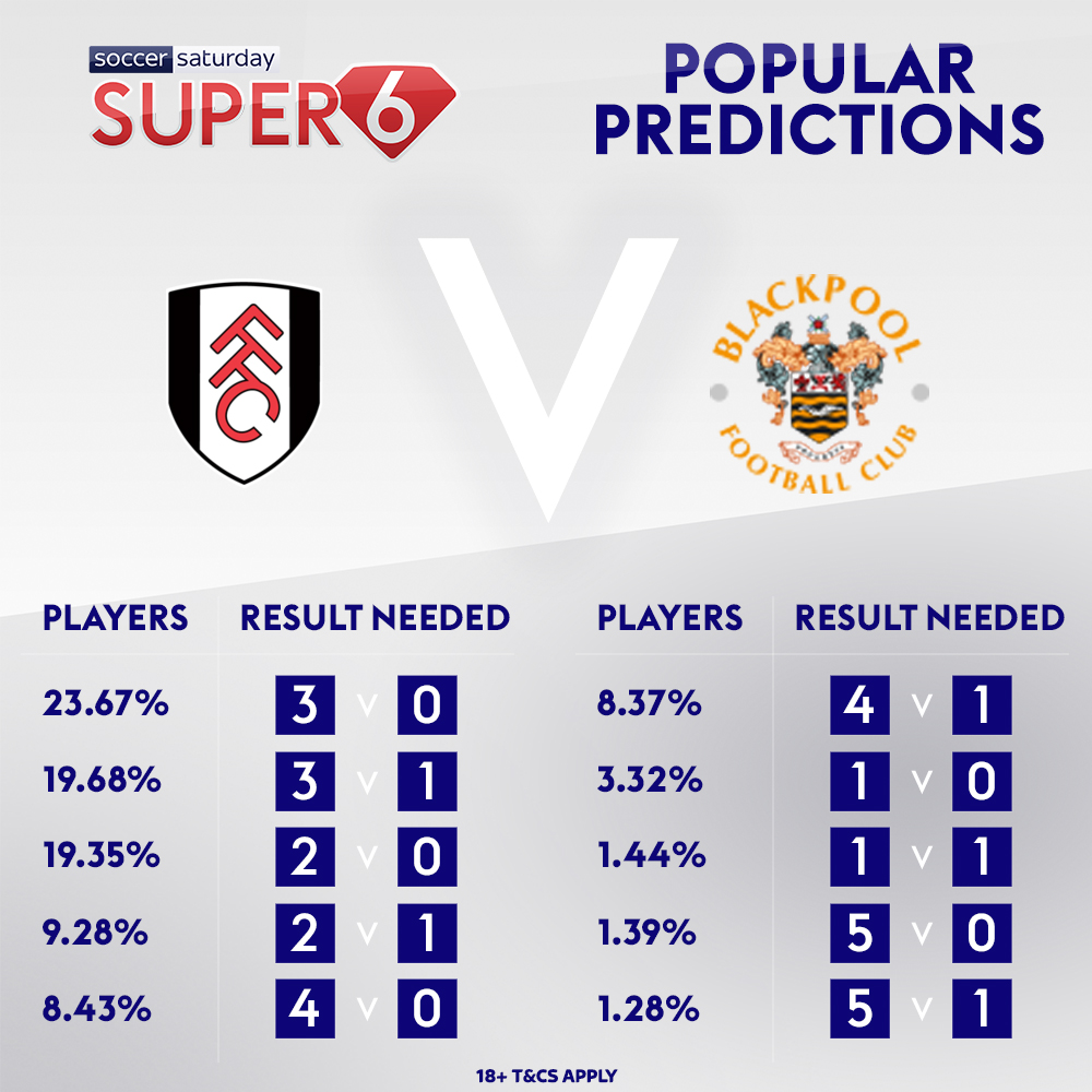 Super 6 is back! Over 200,000 players are predicting a routine 3-0 win for Marco Silva’s men as they welcome Blackpool to Craven Cottage. What are you going for? Play here