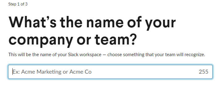 Using a throwaway GMail, I can name my workspace. I use an email address on my (personal, unrelated) domain, I get stuck with "http://mydomain.slack.com " or "http://mydomainworkspace.slack.com " or "http://mydomain-workspace.slack.com "... I want to see _this screen_ using my real email!pic.twitter.com/fz3tCpSDUm