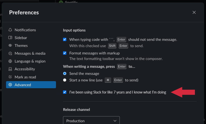 Hey @SlackHQ if you're going to continue to add hand-holding to the app that makes normal daily things harder to do, can you at least add an option to disable it?pic.twitter.com/GAmvRHriaD
