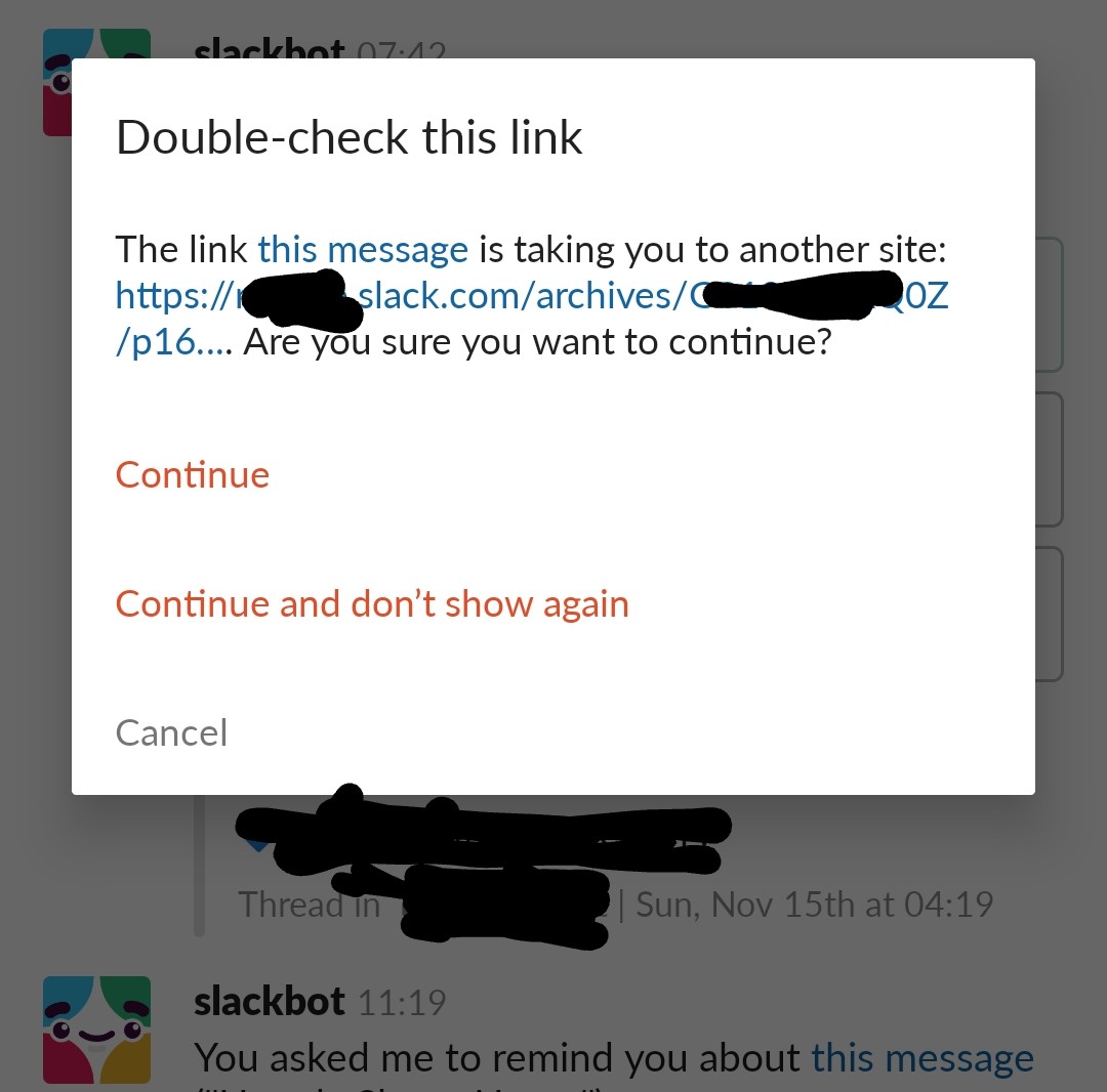 @SlackHQ Experiencing a weird bug with slackbot reminders. The link to "this message" is pushing me to an "external site" which is within same slack group, instead of that message within the app.pic.twitter.com/sGSBB7BoDq