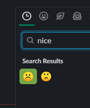 Aw, don't be sad, emoji! On a serious note, emoji search acts a little differently to regular search — it looks at emoji's exact names and matches them depending on the order of the letters. Both 'frowning_face' emoji contain the letters 'n i c e', hence come up in search.