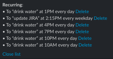 @SlackHQ, support for "Remind to X every Y hours from X AM to Y PM every day/week" would be neat!