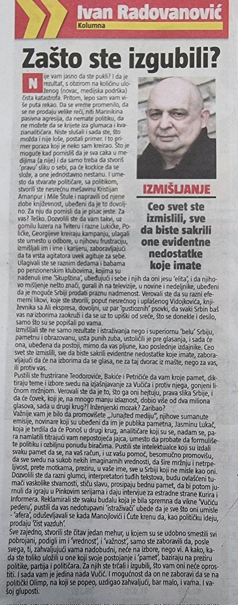 Pita me Miladin na Đermu jutros: "Kako to? Nismo mogli u jednu kolonu pre izbora jer "ne delimo iste vrednosti" Danas, pa možemo sa svima, cilj je rušenje SNS vlasti u Beogradu" Težak amaterizam moj Miladine Ne razumeš ti to Gledaj taj tvoj mladi kupus i ćuti