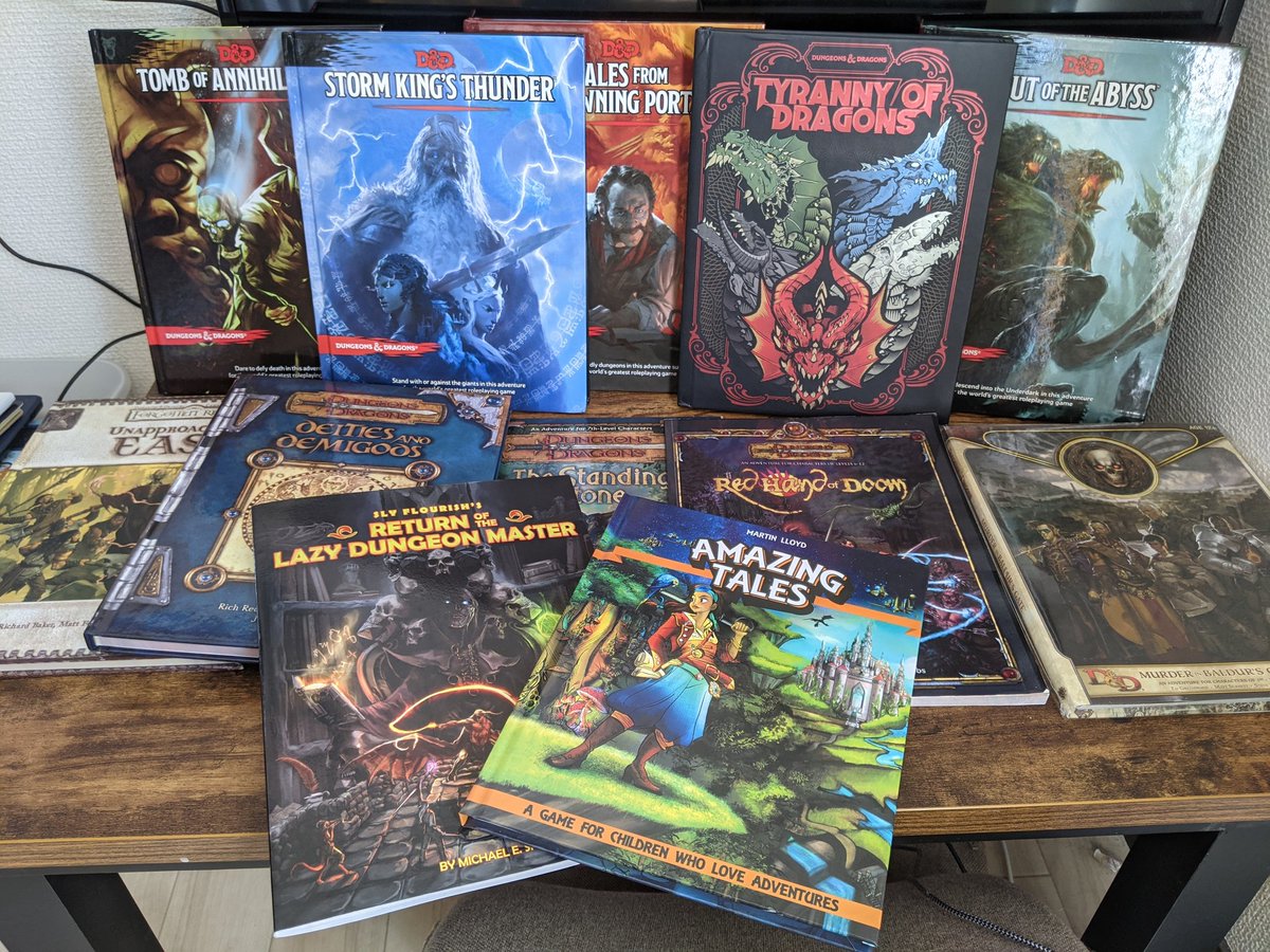 #bookbling so here is mine. I have alot on digital but I try to grab adventures I want to run. Includes@SlyFlourish fantastic DM guide and@mrlloydgp Amazing Tales so I can indoctrinate my 4 year old.