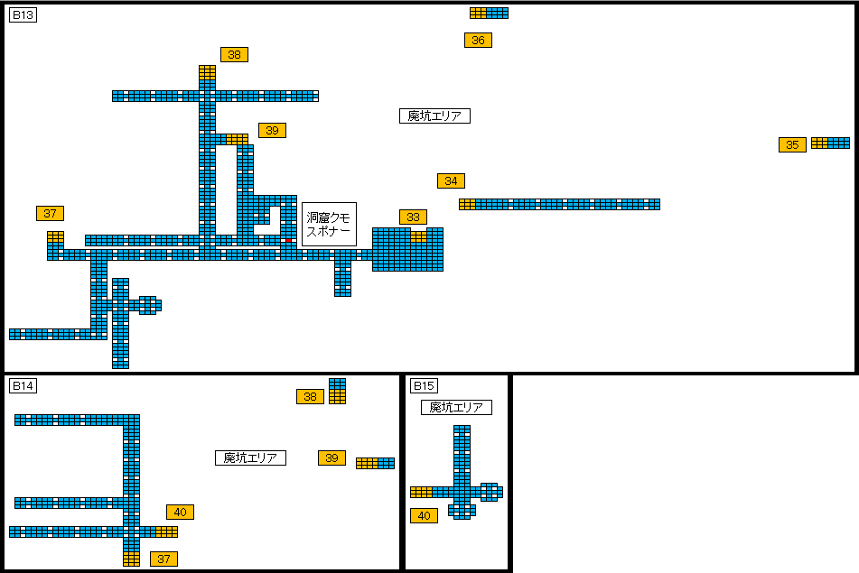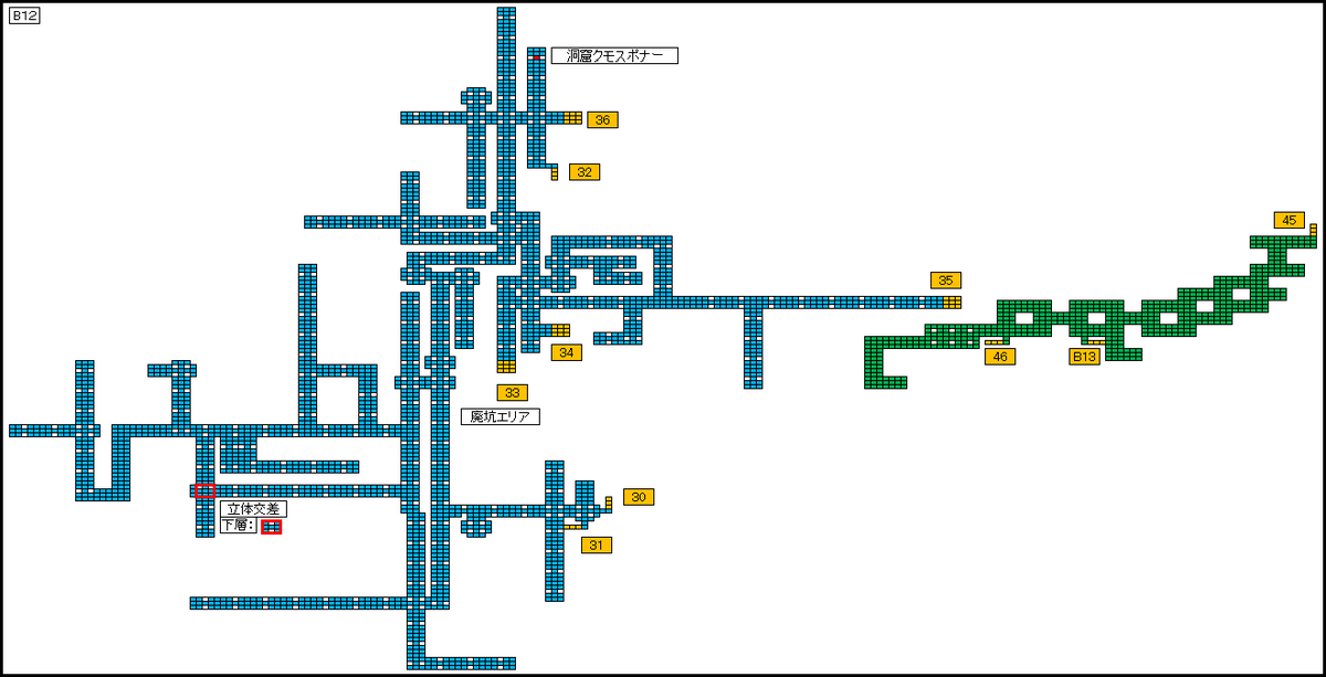 地下迷宮マップ修正&現段階全体 少しは見やすくなったかな? 地図上では平面だが、実際の廃坑は少し起伏があるので 地下12階南西(上が北になるように作成)のような 同フロアでの立体交差もあり得る。pic.twitter.com/HgNFBn3EGI
