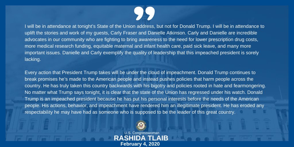 address, but not for Donald Trump. I will be in attendance to uplift the stories and work of my guests, Carly Fraser and Danielle Atkinson. My full statement below:pic.twitter.com/yj1QQNFnCX
