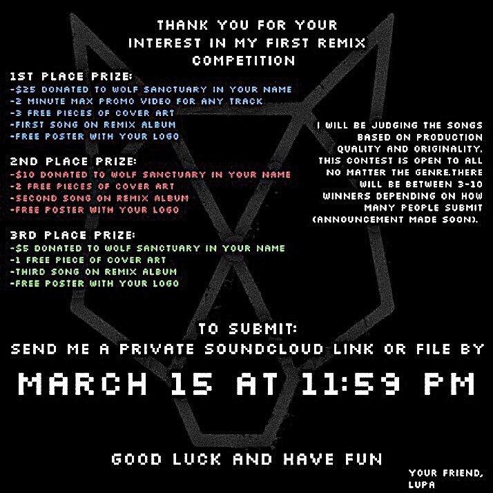 the werehouse remix competition has officially opened. Please read the rules for prize info Email me your submissions by March 15 to be on my first remix album: its.lupa.music@gmail.com Stems are available here: https://we.tl/t-wk7pEvQcN7?src=dnl … (will update when link expires)pic.twitter.com/5ntaQPJQ4S