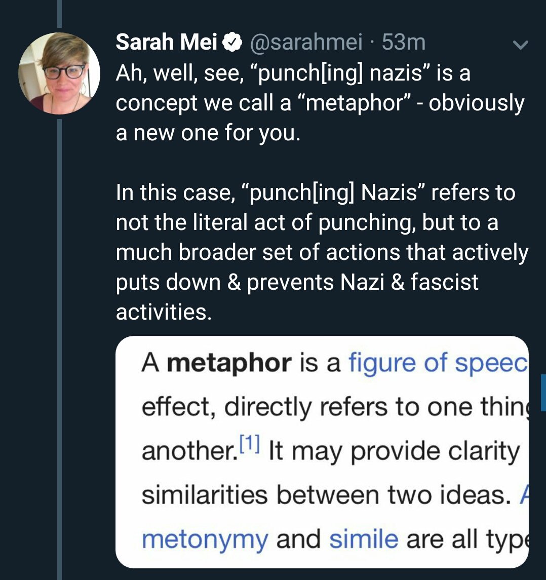 If by "punch" she means bitches at, and by "nazis" she means anyone to the right of Mao. Then yes she punches nazis.