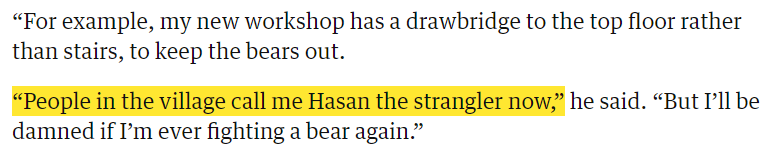 ...So do people in the village call me 'Hasan the Boat-builder'? No! But strangle *just one little bear*... https://www.theguardian.com/world/2020/jan/16/creating-a-buzz-turkish-beekeepers-risk-life-and-limb-to-make-mad-honey …pic.twitter.com/qQgAjAbLSu