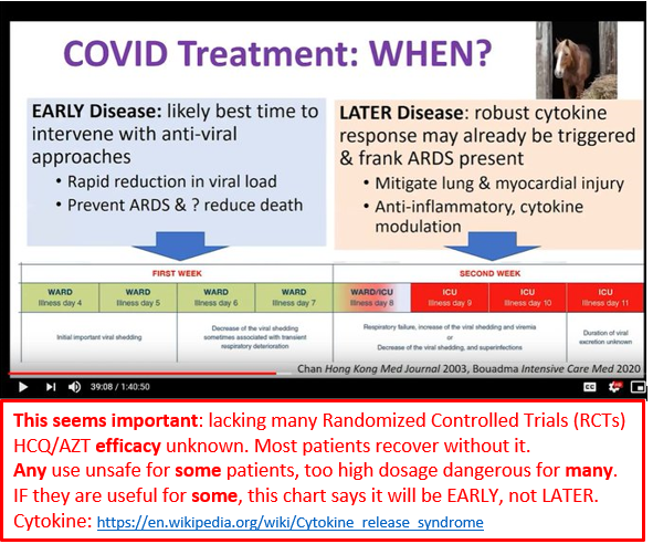 The trick is that IF HCQ/(AZT) has any real efficacy, there's a narrow window in the EARLY time via
