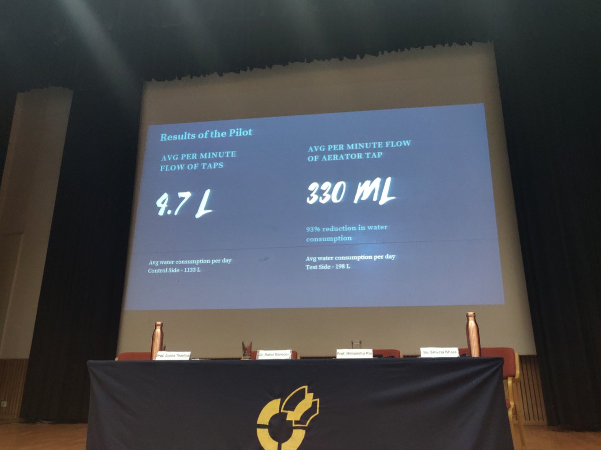 Agrim and Marul report that our regular taps have a flow of 4.7 litres per minute! Their pilot project of installing aerated faucets in the hostel mess reduced the water consumption from 5331 litres in a week to 2551 litres! (2/4)