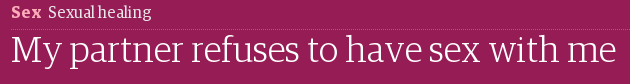 @SoMuchGuardian Got fed up with being subject of weekly articles My Partner Watches TV/Keeps Socks On/ Makes Me Wear Hat etc probablyThanks. Twitter will use this to make your timeline better. Undo -