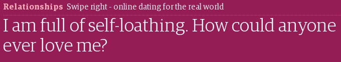 @SoMuchGuardian Nobody will love you if you don't love yourself. Especially if you then go on a tirade on a news website.#ProTipThanks. Twitter will use this to make your timeline better. Undo -
