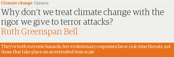 I guess because terror attacks kill you now and climate change takes a 1000 years?