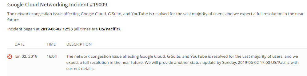 If anyone wanted to know why YouTube (and lots of other websites/services) were down over the weekend Google has their writeup up now: https://status.cloud.google.com/incident/cloud-networking/19009 …