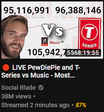 @SocialBlade for having the best PewDiePie and T-Series Youtube live sub counts the past 7 months. So many cool moments and milestones in those 5,500 hours!pic.twitter.com/hqtarVY3wt