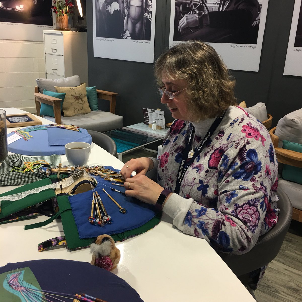 #lacemaking@Bean_Caffe with@laceyloudesign - no men yet, c’mon guys