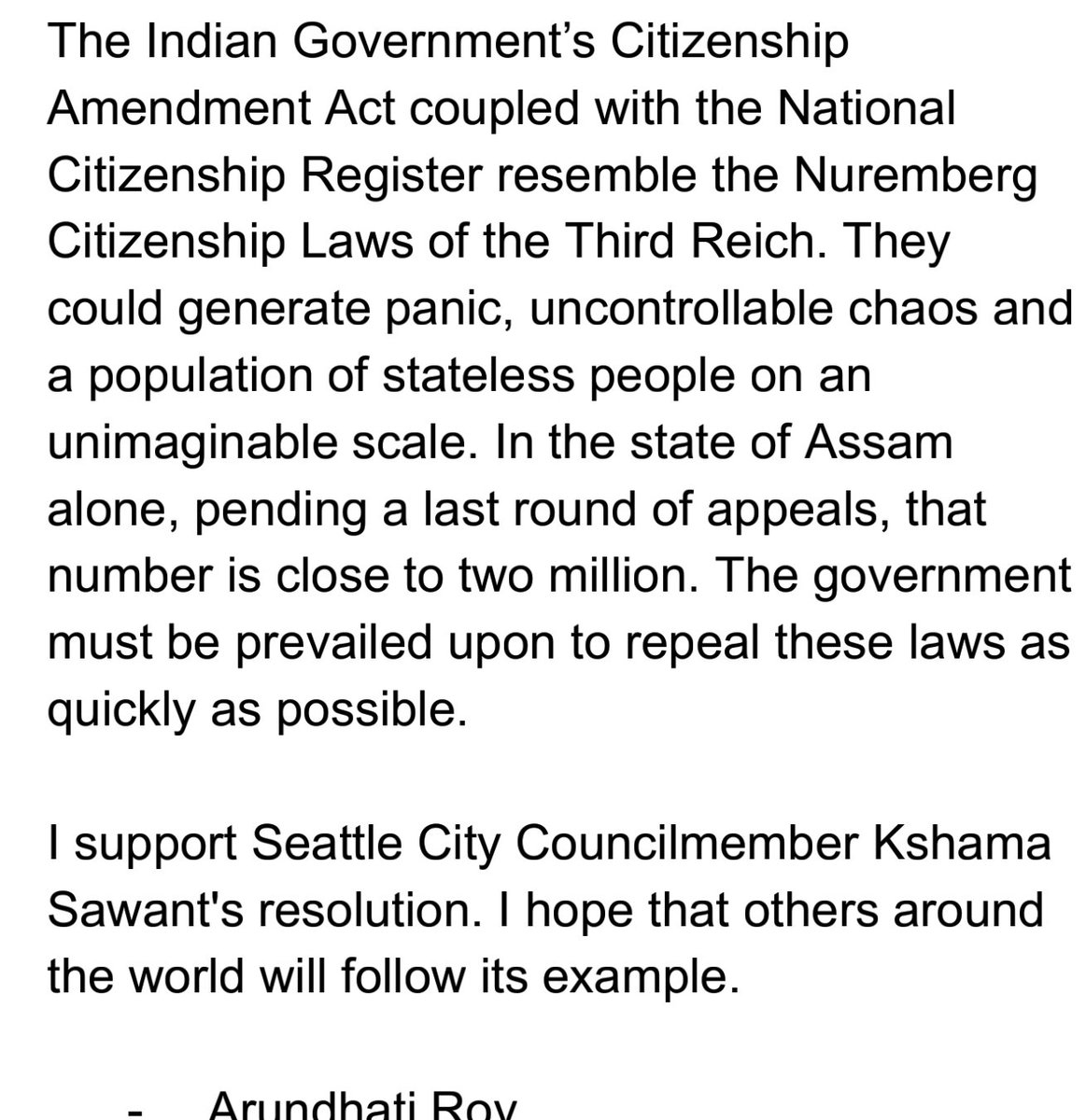 @SeattleCouncil, opposing the Citizenship Amendment Act & National Register of Citizens by the right-wing, Modi government in India, laws that threaten the citizenship rights of hundreds of millions.pic.twitter.com/qRl9YSWVcp