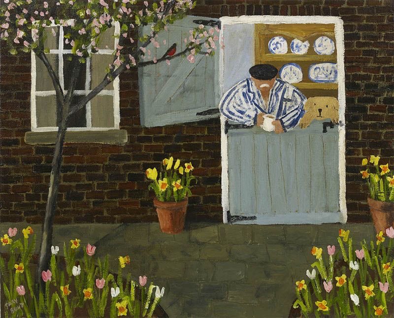 He’s never very far away is he? I love this one by Gary Bunt, I think the old man just got out of bed, opened the door and Spring has arrived. Love the style of the barn type door, his jamas and the dresser plates.pic.twitter.com/p3cBGCeAov