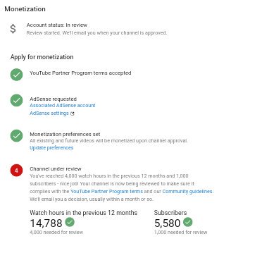Hello Team YouTube my channel is completed 5,580subscribers and 14,788 watch hours . but my channel si still under review, please help me. Please Enable monetization Tab.. @Teamyoutube @ytcreatorsindia Thanks.. Sohitkumarraj 1 https://www.youtube.com/channel/UCEmplxr7OCH-yPGTU-pnNBg … pic.twitter.com/YVnWKvgzOQpic.twitter.com/zNqEcMW63o