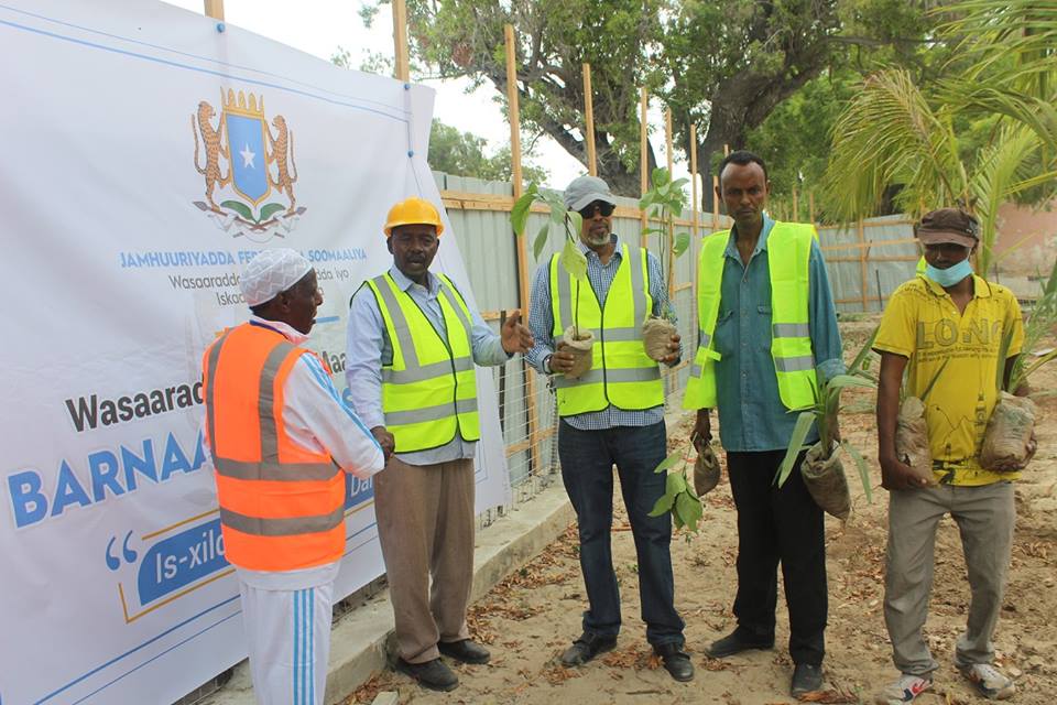 Foreign Ministry staff led by @SMMOFA carried out a clean-up and planting campaign for the national theater after the ministry donated 150 different fruit seedlings and several trees and shrubs as the first national initiative to support volunteerism.#Somaliapic.twitter.com/8SYnCXO7GJ