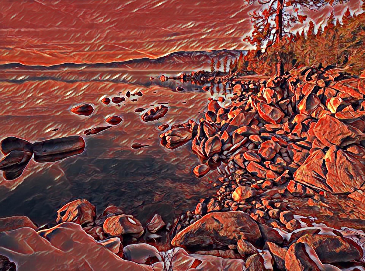 Banteay Srei Cambodia Temple + Oil Painting in Red (v3) somatic Ai effect