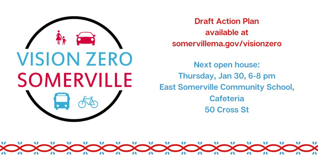 Did you know that the City's Draft Vision Zero Action Plan is online for public comment? The plan lays out the City's strategy for eliminating transportation-related deaths & serious injuries. Visit http://somervillema.gov/visionzero to learn more about the plan & see upcoming open houses.pic.twitter.com/L0VW6ffGT9