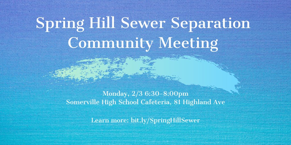 Join the Somerville Engineering Department, Ward 3 Councilor Ben Ewen-Campen, & Ward 5 Councilor Mark Niedergang on Mon, 2/3 for a community meeting to discuss upcoming sewer and roadway infrastructure upgrades planned in the Spring Hill area. Learn more: http://bit.ly/SpringHillSewer .pic.twitter.com/vDGe87zwjH