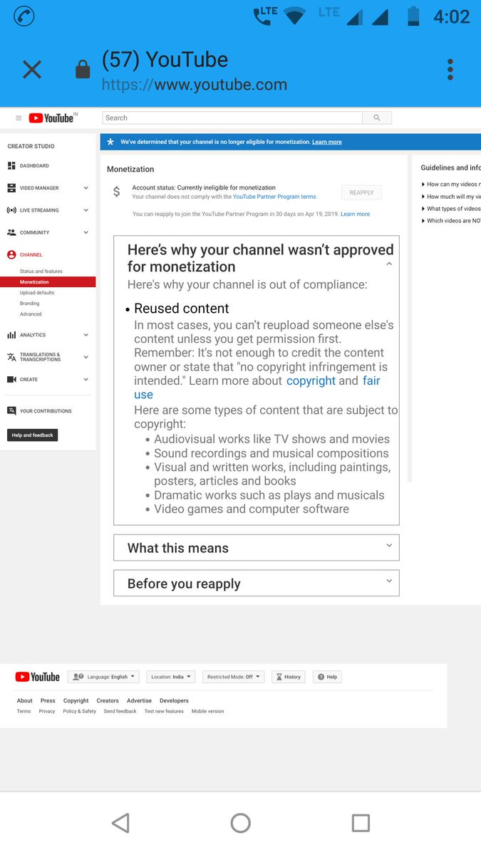 @YouTube Dear Team, Please review again .I am 100% sure there is no reused content .I am giving my original voice in all of Videos.Whenever we got some traffic,YouTube simply demonetized by giving common reason.if you still think there is problem then give us exact video details1 reply 1 retweet 3 likes -
