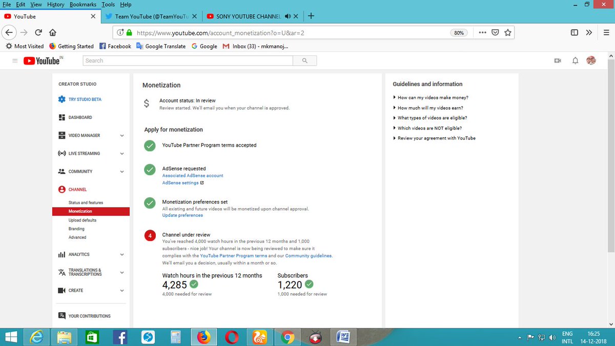 Hello @TeamYouTube My channel is completed the 4K+ hours watch time & 1K+ subscribers in previous 365 days and still my channel monetization is not enabled please guide us. Channel link :- https://www.youtube.com/channel/UCymNhU2cMIYraEbVrNroVbw …pic.twitter.com/V4JPc88qmV