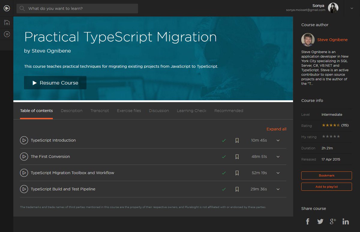 #TypeScript Migration | COMPLETED@nycdotnet@pluralsight http://www.pluralsight.com/courses/typescript-practical-migration …pic.twitter.com/Y8mLM4dZky